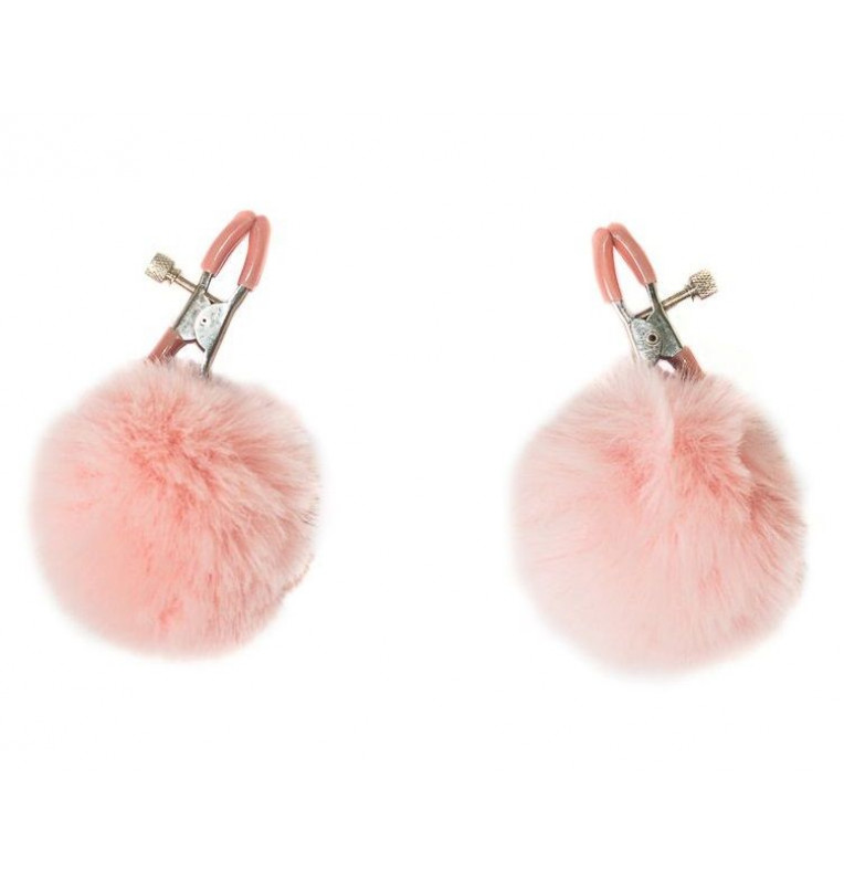 Зажимы на соски Angelic с розовыми меховыми шариками