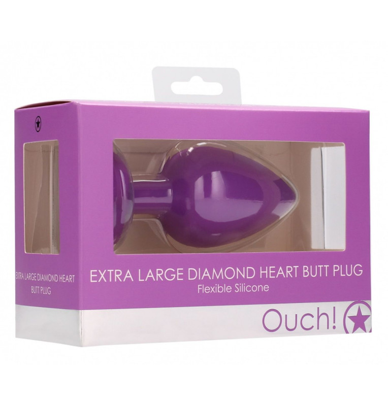 Фиолетовая анальная пробка с прозрачным стразом Extra Large Diamond Heart Butt Plug - 9,5 см.