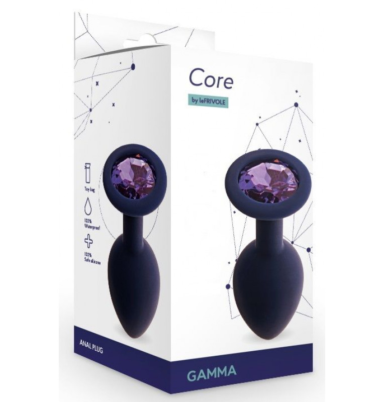 Черничная анальная пробка с фиолетовым кристаллом Gamma L - 9,4 см.
