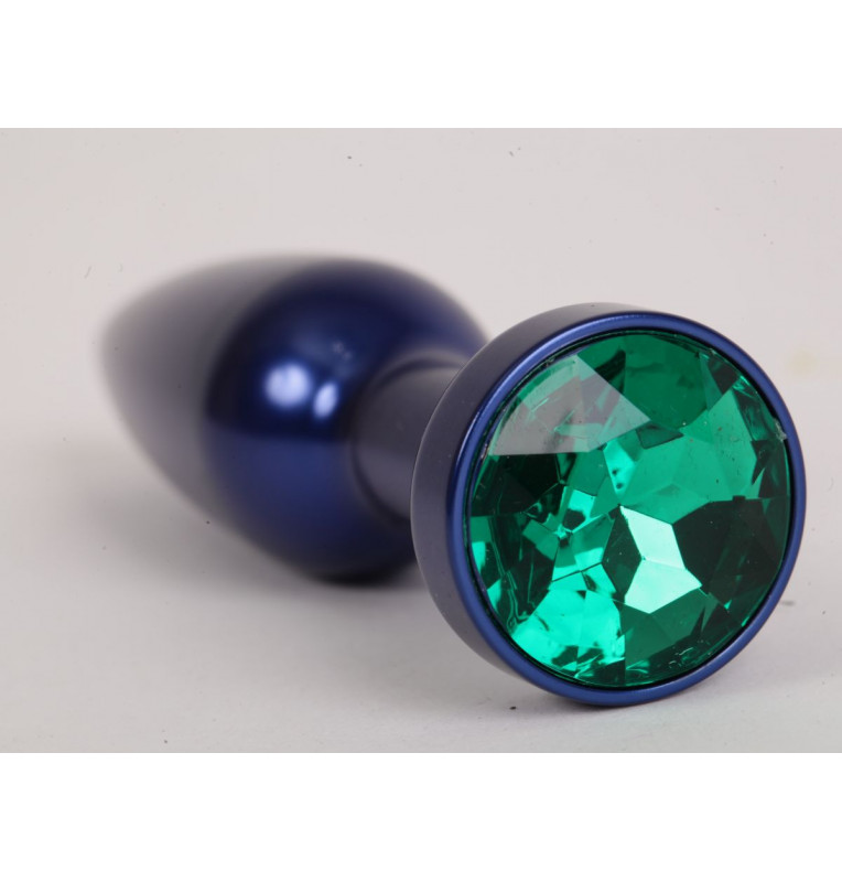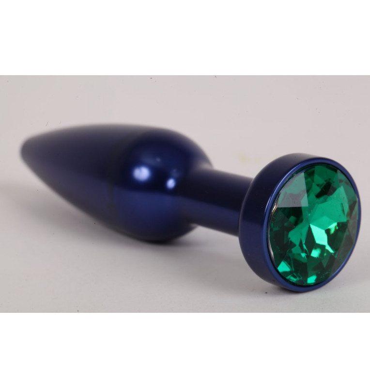 Большая синяя анальная пробка с зеленым стразом - 11,2 см.