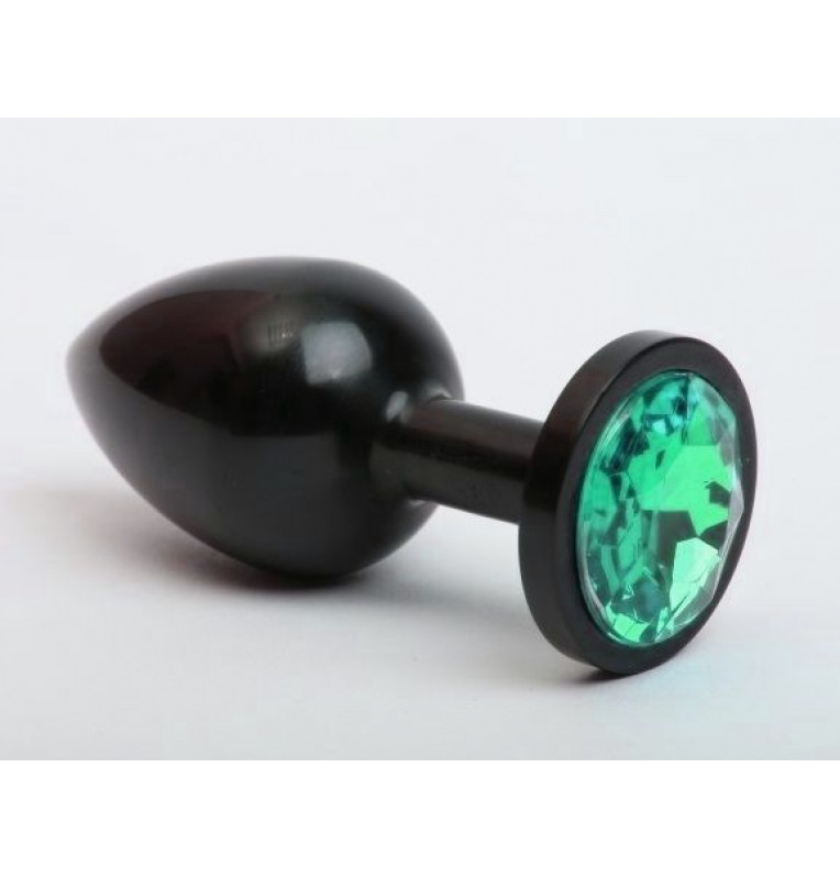 Чёрная анальная пробка с зелёным стразом - 7,6 см.