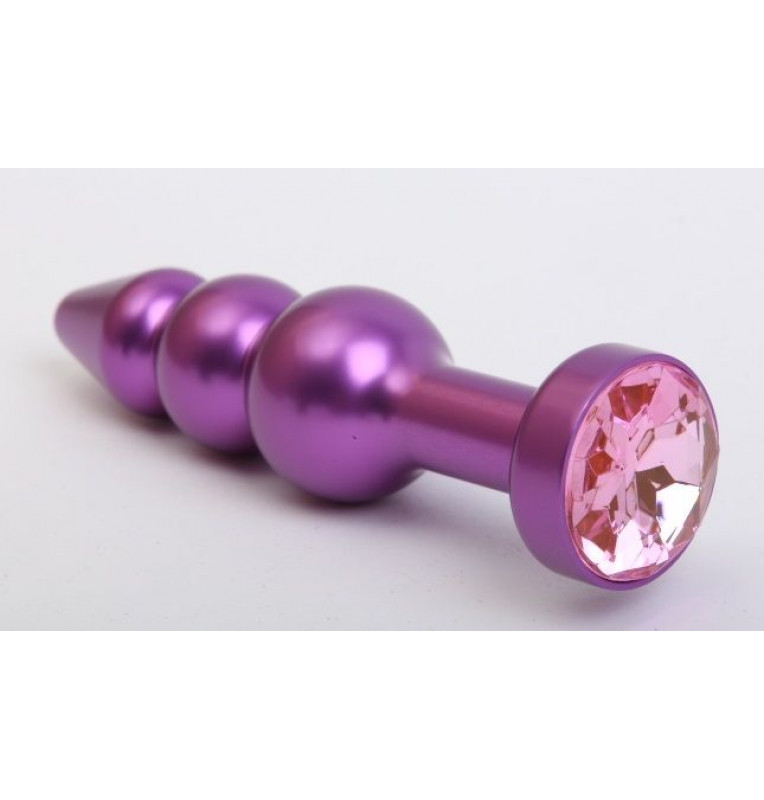 Фиолетовая фигурная анальная ёлочка с розовым кристаллом - 11,2 см.