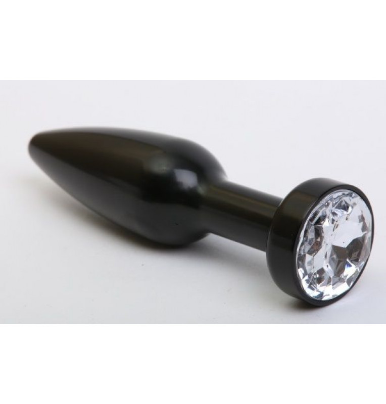Чёрная удлинённая пробка с прозрачным кристаллом - 11,2 см.