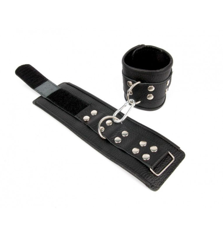 Черные кожаные наручники с заклепками с фиксацией липучками