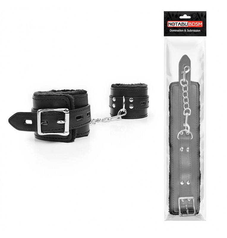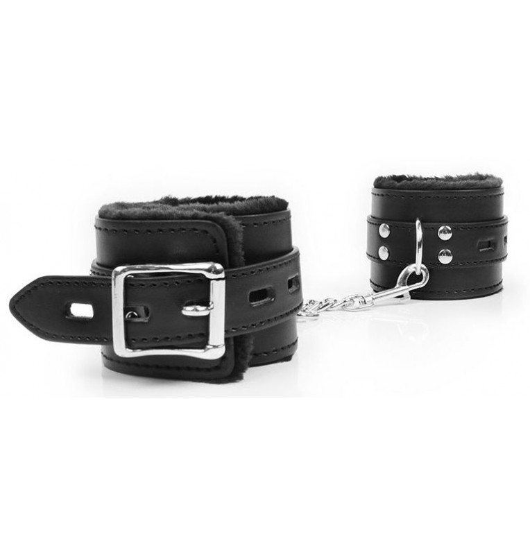Великолепные оковы под кожу для любителей БДСМ-игр! Внутренняя сторона изделий отделана мехом, который препятствует натиранию кожи. Размер оков регулируется с помощью ремней. Оковы соединяются между собой металлической цепочкой.