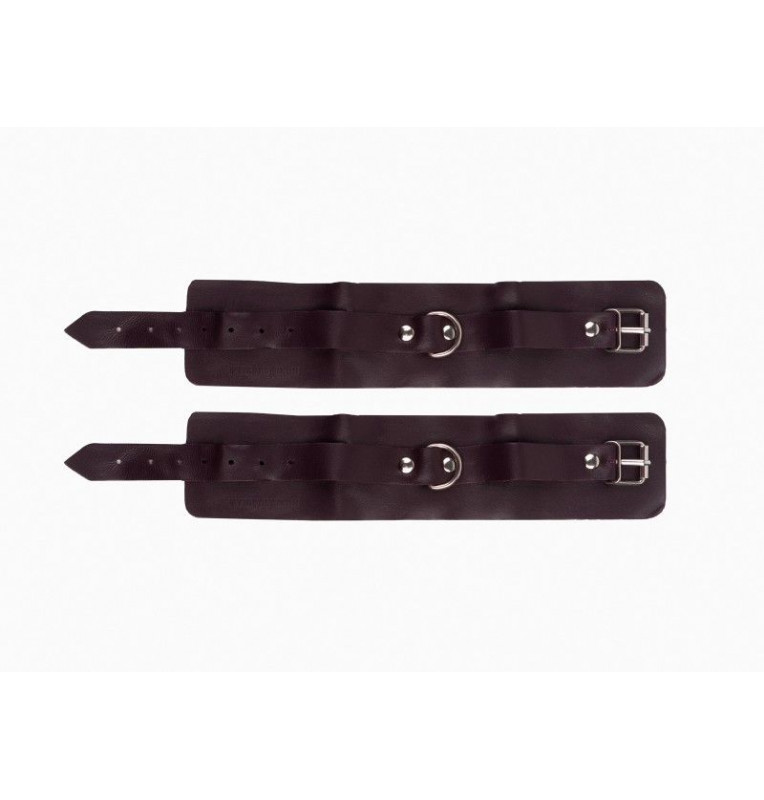 Наножники — один из популярных аксессуаров в БДСМ-практике. Они позволяют ограничить подвижность партнера, сделав его покорным рабом в руках умелого господина, а также помогают зафиксировать тело в позе, удобной для секса. Наножники выполнены из прочной плотной натуральной кожи, надежно фиксируются ремнями с металлическими пряжками. Аксессуары соединяются двумя карабинами между собой. Ремни зафиксированы на наножниках металлическими клепками. Брутальные наножники для ценителей жесткой и сильной фиксации. Обхват наножников - 28 см., ширина - 6 см. Ширина ремешков - 2 см.