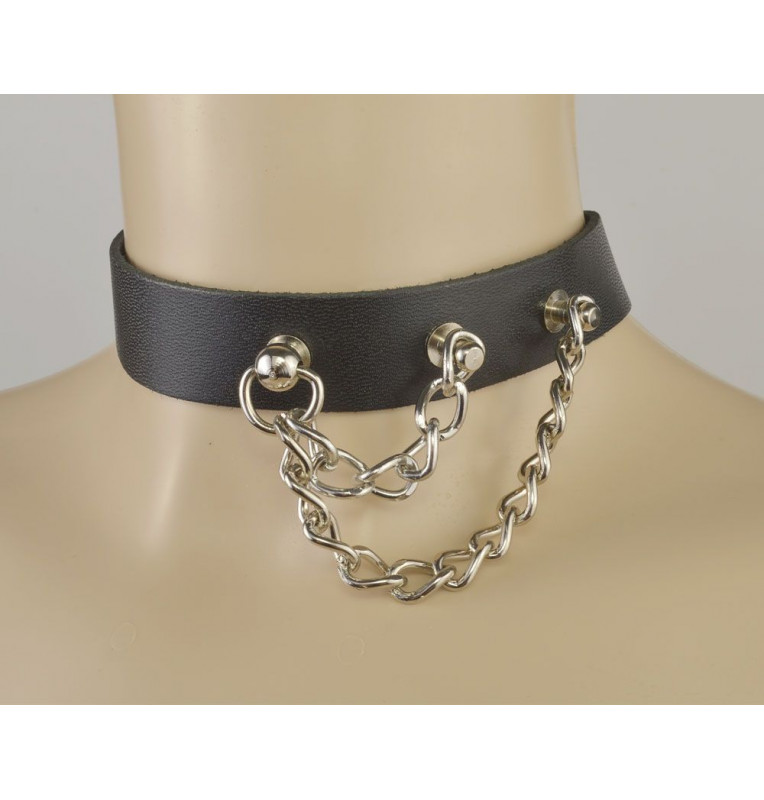 Эффектный ошейник изготовлен из натуральной кожи. Размер регулируется при помощи металлической пряжки. Металлическая фурнитура имеет никелевое покрытие.