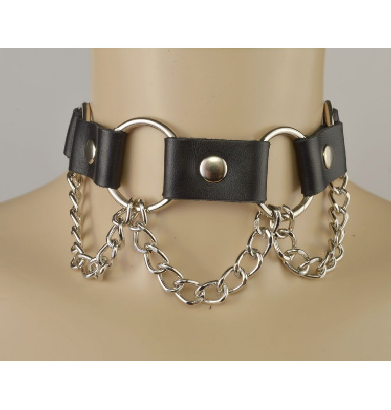 Эффектный ошейник изготовлен из натуральной кожи. Металлическая фурнитура имеет никелевое покрытие.