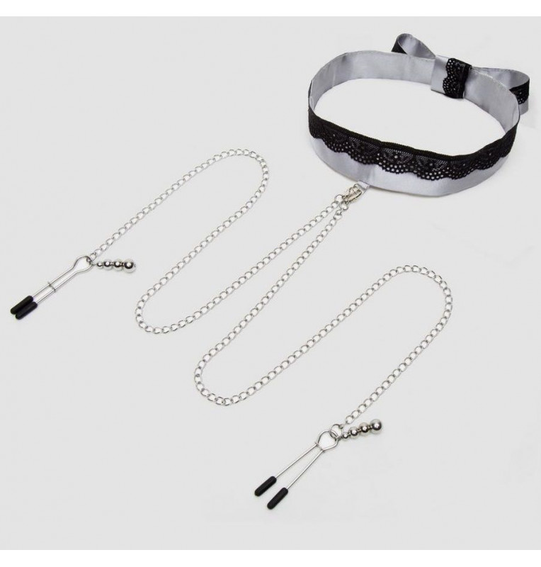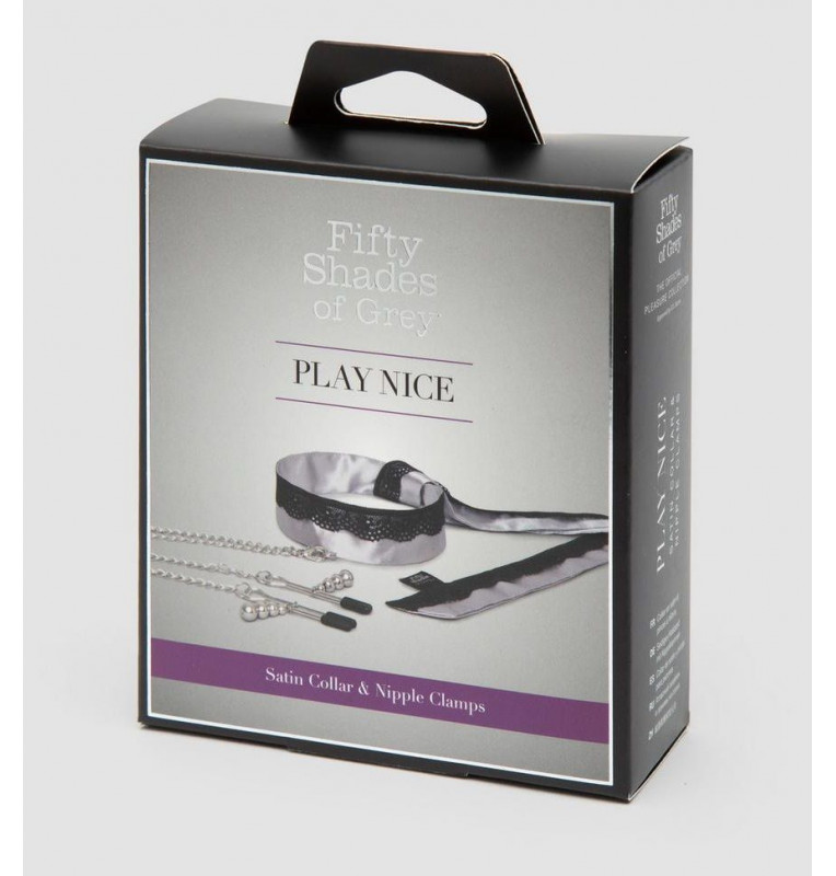 В честь десятилетия эротических открытий и достижений официальная коллекция «Пятьдесят оттенков серого» приглашает вас погрузиться в атмосферу роскоши и удовольствий. Коллекция стильных высококачественных игрушек, аксессуаров для бондажа и предметов первой необходимости, созданная Э.Л. Джеймс, объединяет в себе все, что может вам понадобится, чтобы исследовать свои чувства и впечатления в спальне и за ее пределами. Переливающийся серебристый атласный ошейник с нежной черной кружевной отделкой и регулируемыми зажимами для сосков. Комфортно ощущается даже на самой нежной коже. Зажимы регулируются. Высокий комфорт при длительном ношении