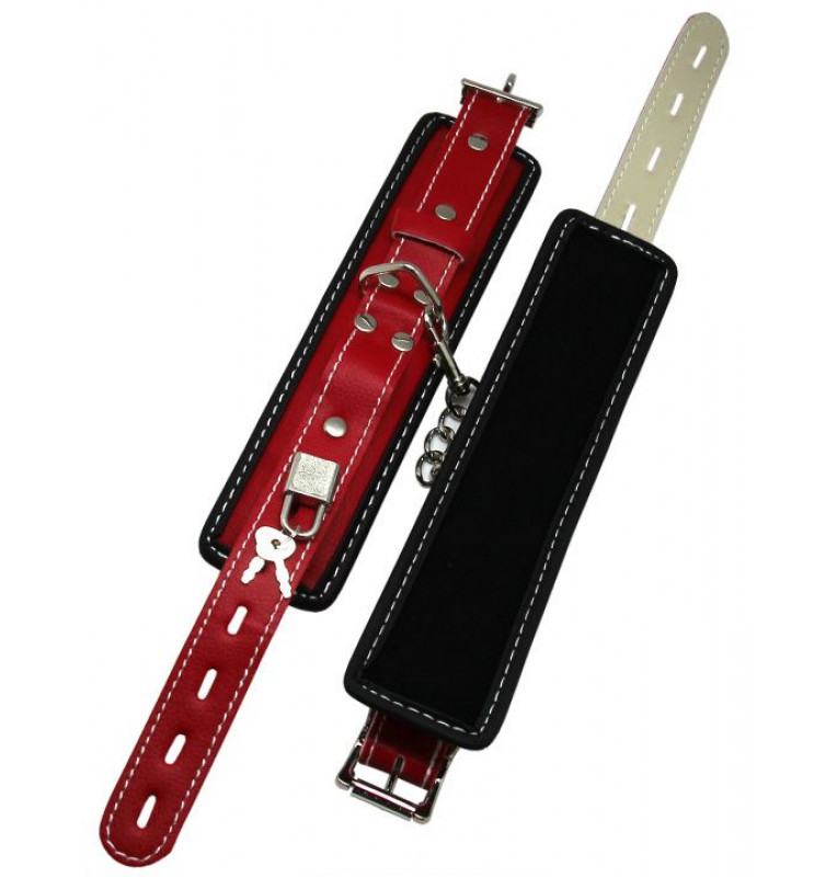 Красно-черные регулируемые наручники с фиксацией на карабинах