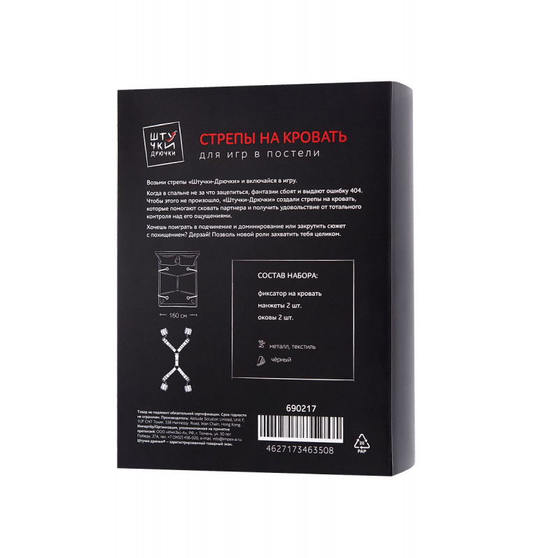 Возьми стрепы и включайся в игру! Когда в спальне не за что зацепиться, фантазия сбоит и выдает ошибку 404. Чтобы этого не произошло, Штучки-дрючки создали стрепы на кровать, которые помогают сковать партнера и получить удовольствие от тотального контроля над его ощущениями. Хочешь поиграть в подчинение и доминирование или закрутить сюжет с похищением? Дерзай! Позволь новой роли захватить тебя полностью! В комплекте: фиксатор, 2 манжеты, 2 оков.