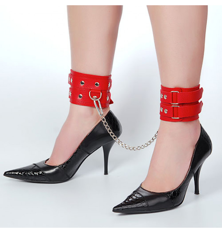Кожаные красные оковы с цепочкой