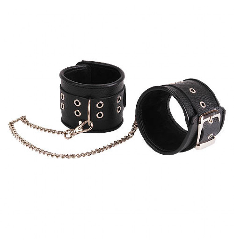 Кожаные черные оковы с широким ремешком, соединенные цепочкой