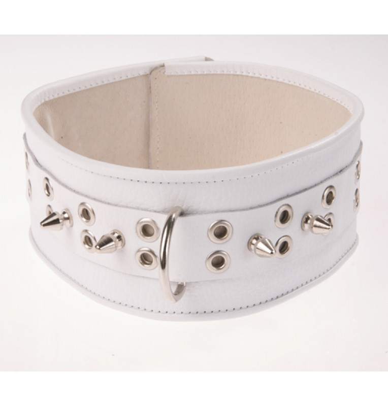 Изготовлен из натуральной кожи с велюровой подкладой. При изготовлении использована никелированная фурнитура. Размер универсальный. Ширина - 6,5 см. Длина шипов - 1,2 см.