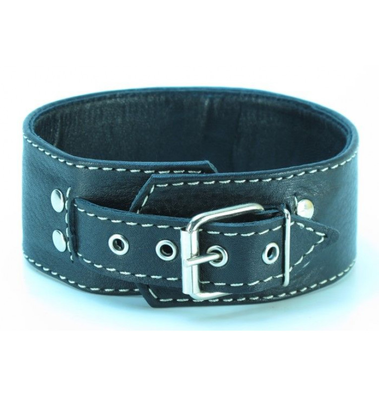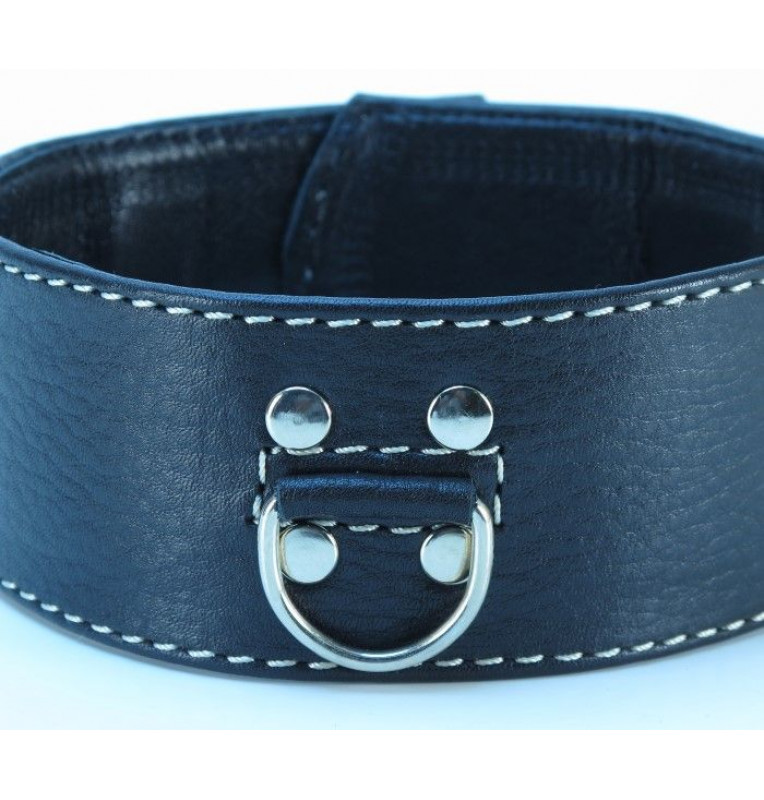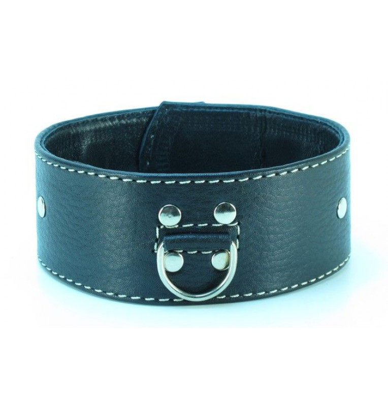 Черный кожаный ошейник с петлёй для поводка. Ширина - 5 см.