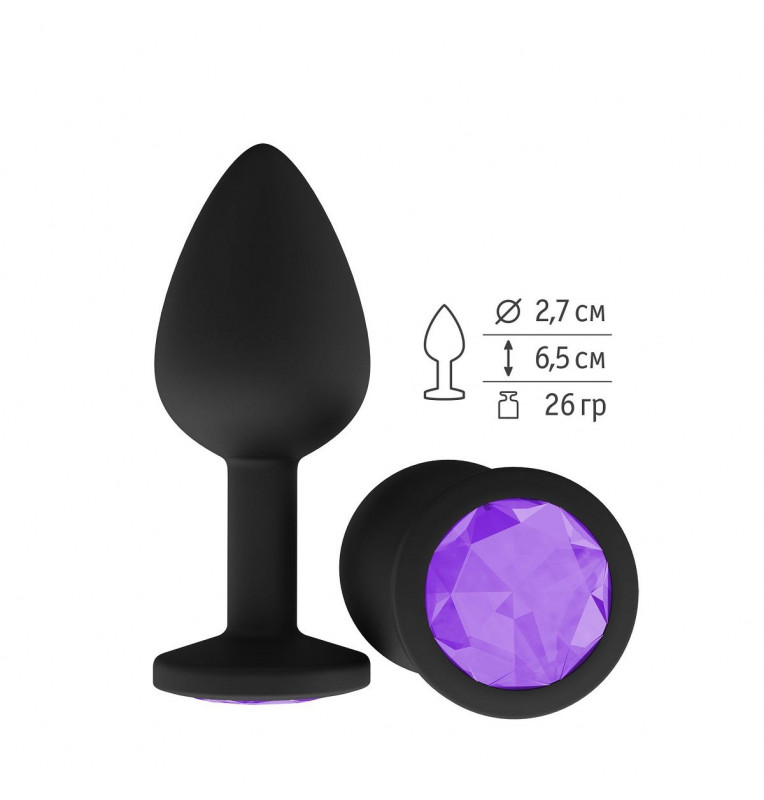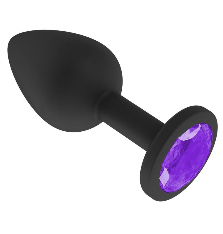 Чёрная анальная втулка с фиолетовым кристаллом - 7,3 см.
