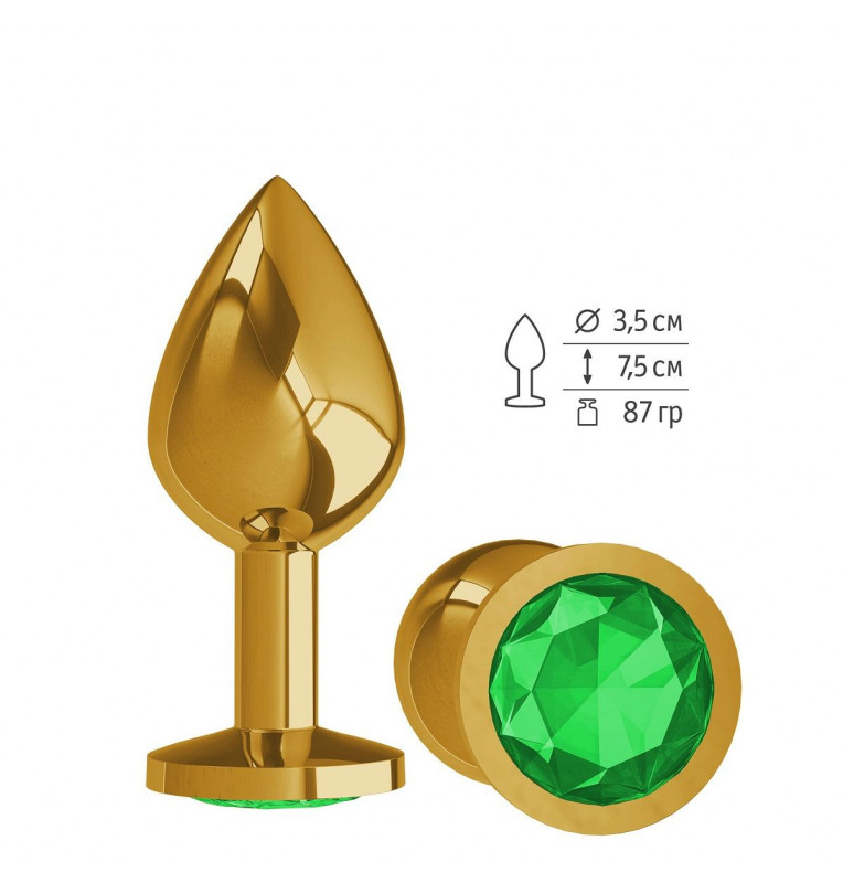 Золотистая средняя пробка с зеленым кристаллом - 8,5 см.