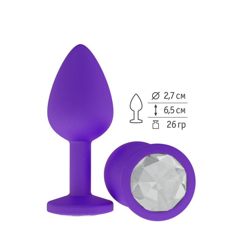 Фиолетовая силиконовая пробка с прозрачным кристаллом - 7,3 см.