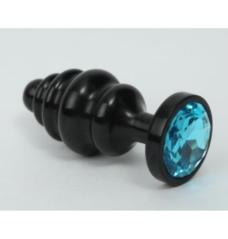 Черная фигурная анальная пробка с голубым кристаллом - 8,2 см.