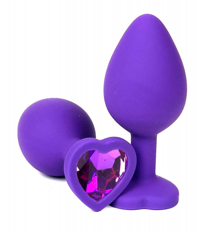 Фиолетовая силиконовая анальная пробка с фиолетовым стразом-сердцем - 10,5 см.