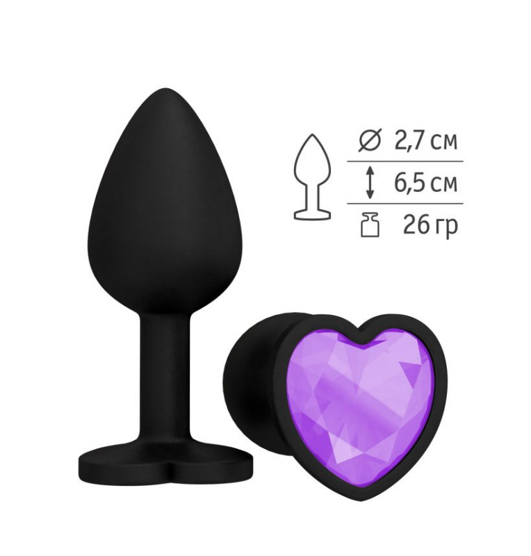 Черная силиконовая пробка с лиловым кристаллом - 7,3 см.