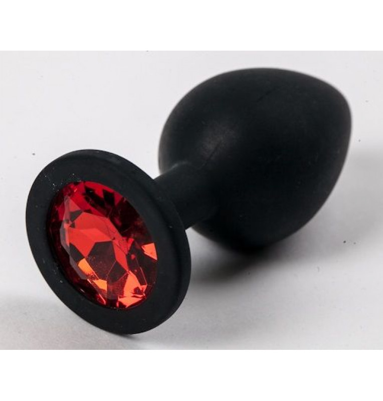 Черная силиконовая анальная пробка с красным кристаллом - 9,5 см.
