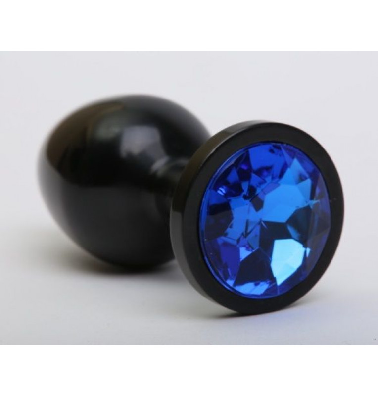 Чёрная анальная пробка с синим стразом - 8,2 см.