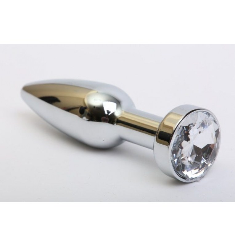 Удлинённая серебристая пробка с прозрачным кристаллом - 11,2 см.