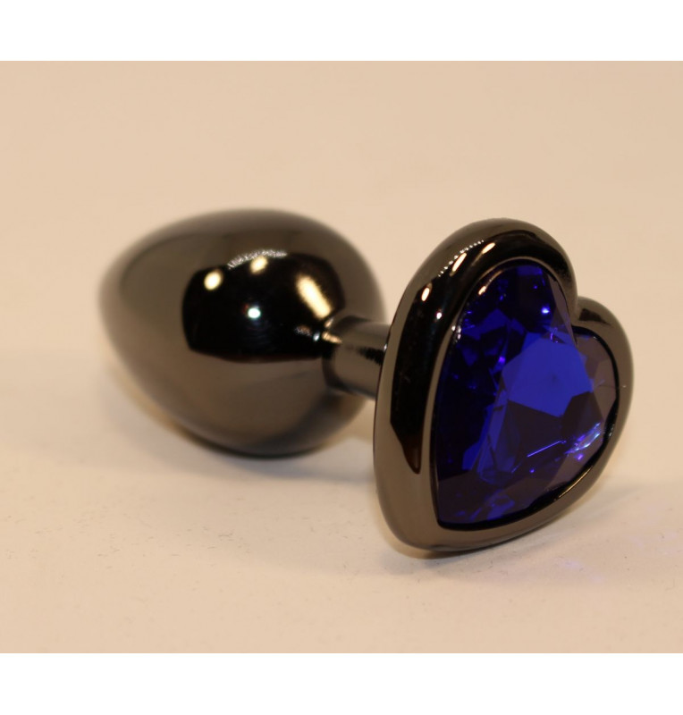 Чёрная анальная пробка с синим стразом-сердцем - 8 см.