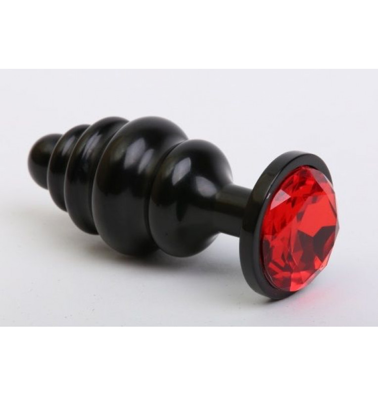 Черная фигурная анальная пробка с красным кристаллом - 8,2 см.