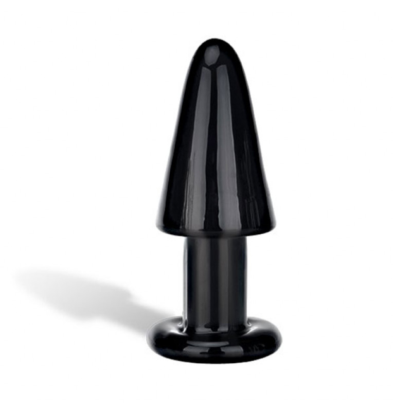 Черная анальная втулка из закаленного стекла. Плоское ограничительное основание позволяет комфортно использовать эту игрушку для анальных утех. Общая длина: 12,5 см. Максимальный диаметр: 4,3 см.
