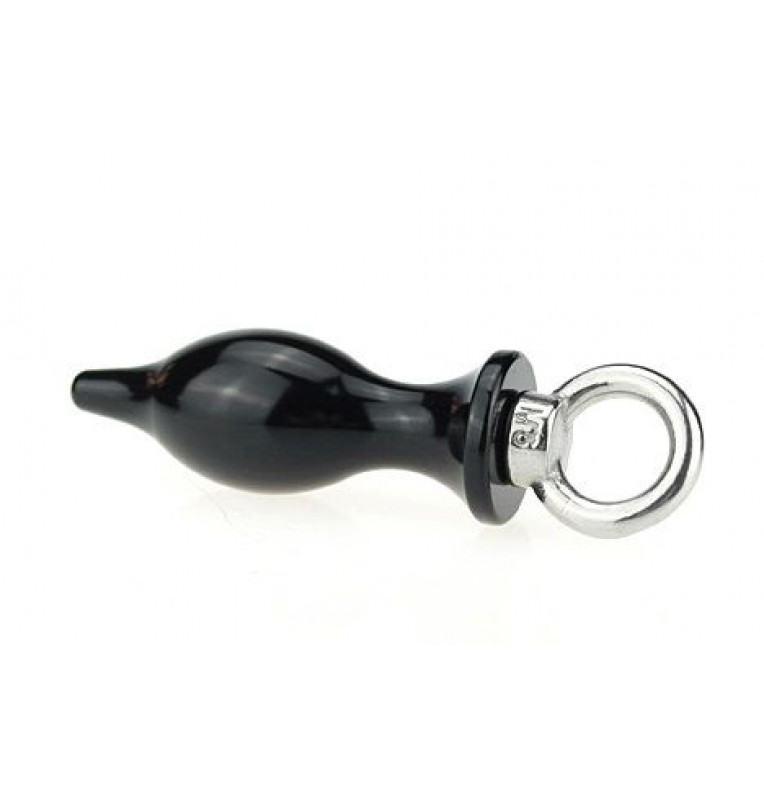 Чёрная металлическая анальная пробка с кольцом - 7 см.