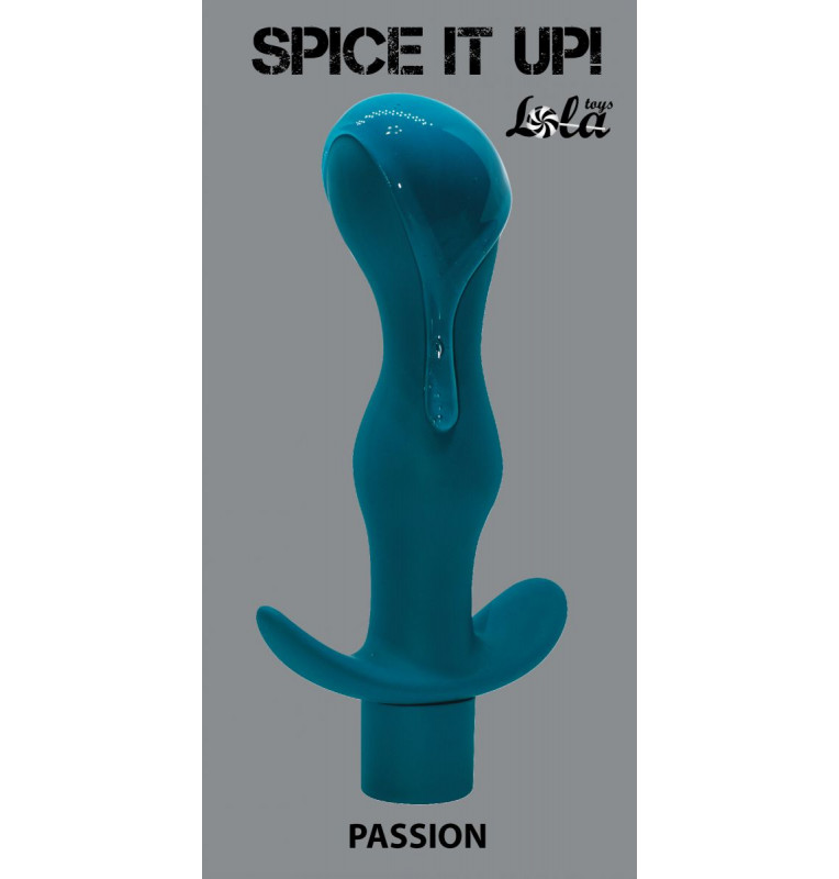 Бирюзовая фигурная анальная пробка с вибрацией Passion - 14 см.