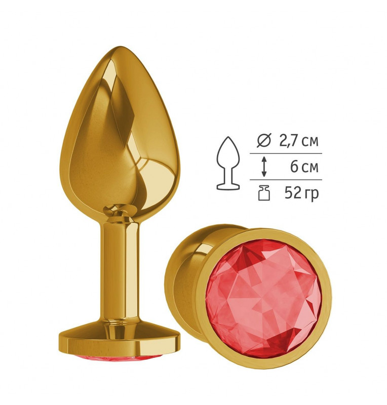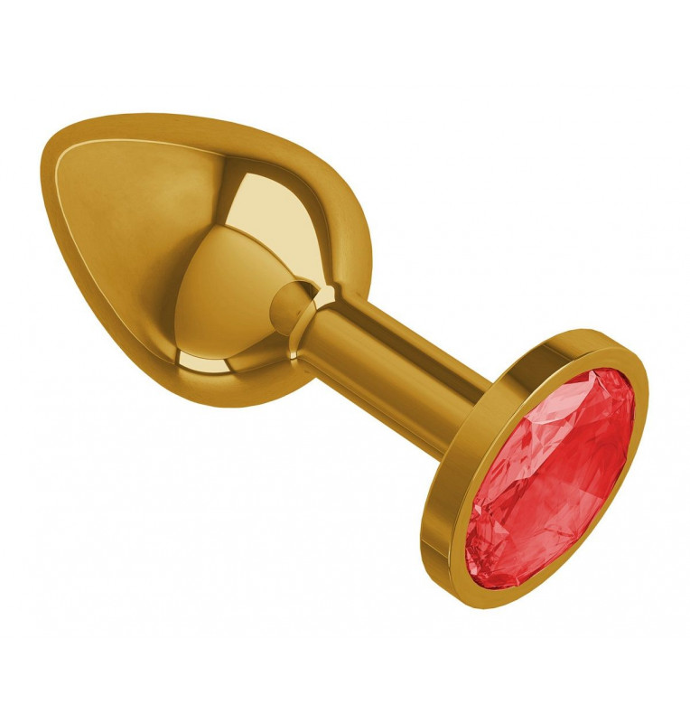 Золотистая анальная втулка с красным кристаллом - 7 см.
