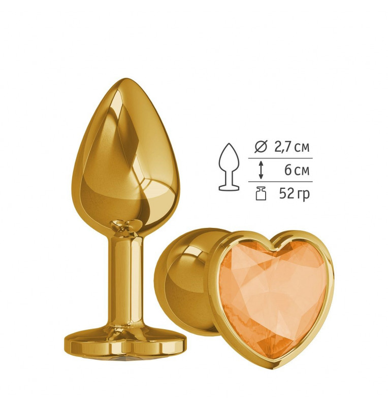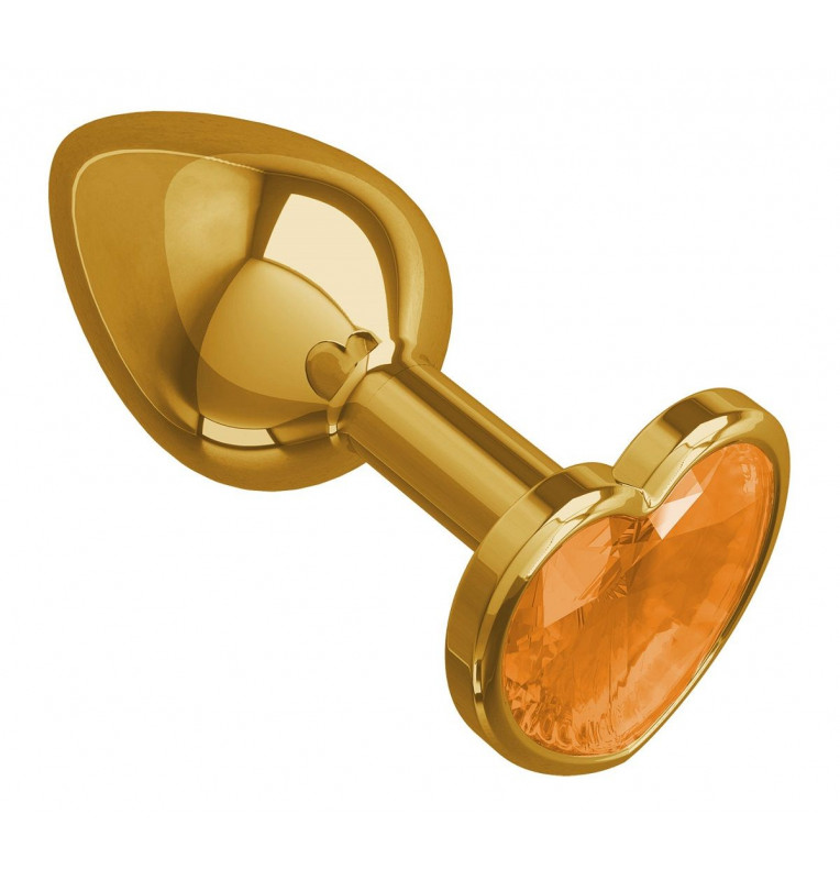 Золотистая анальная втулка с оранжевым кристаллом-сердцем - 7 см.
