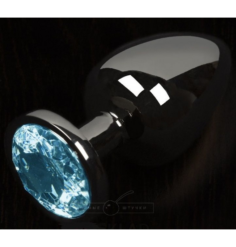 Графитовая анальная пробка с голубым кристаллом - 6 см.