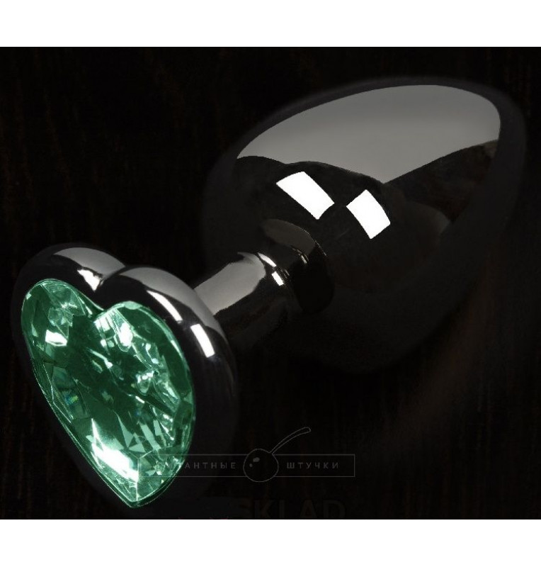 Графитовая анальная пробка с зеленым кристаллом в виде сердечка - 6 см.