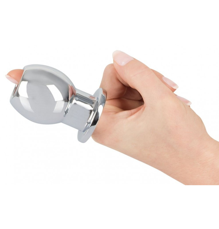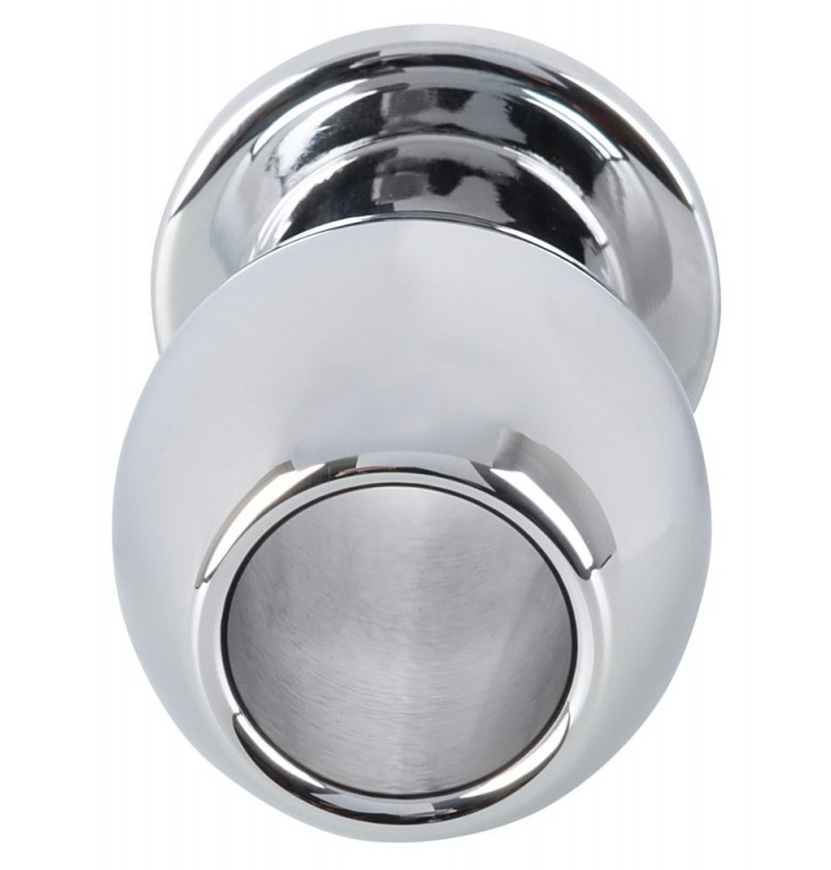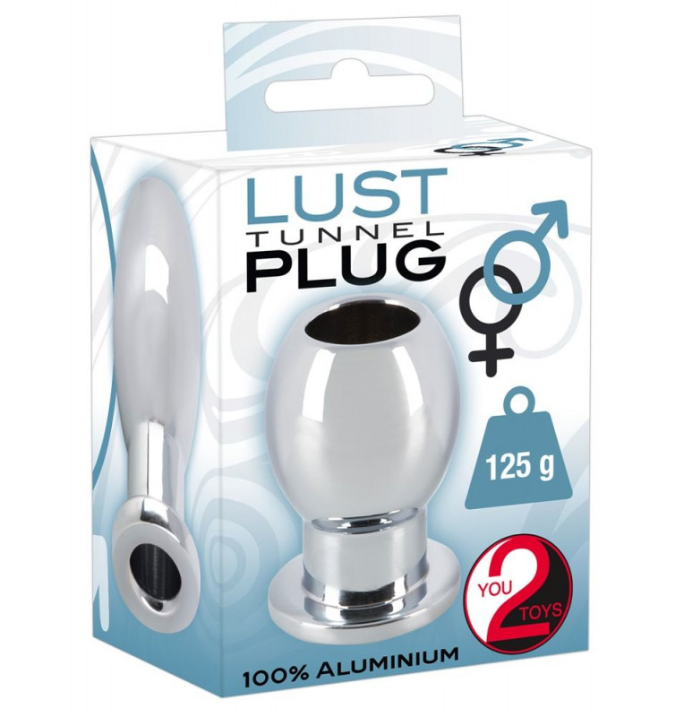 Алюминиевая анальная пробка с тоннелем Lust Tunnel Plug. Гладкая, с широким ограничительным основанием. Диаметр полости - 2,5 см.