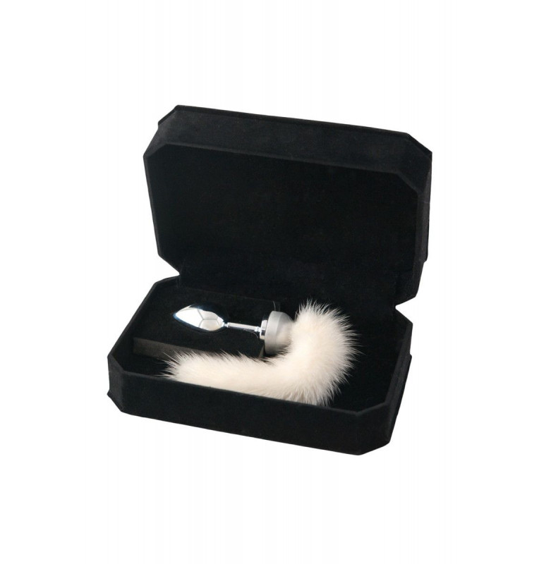 Анальная втулка маленькая с белым хвостом в коробке. Поставляется в подарочной упаковке.