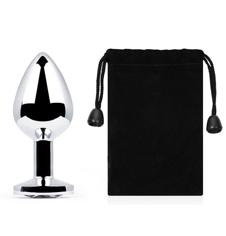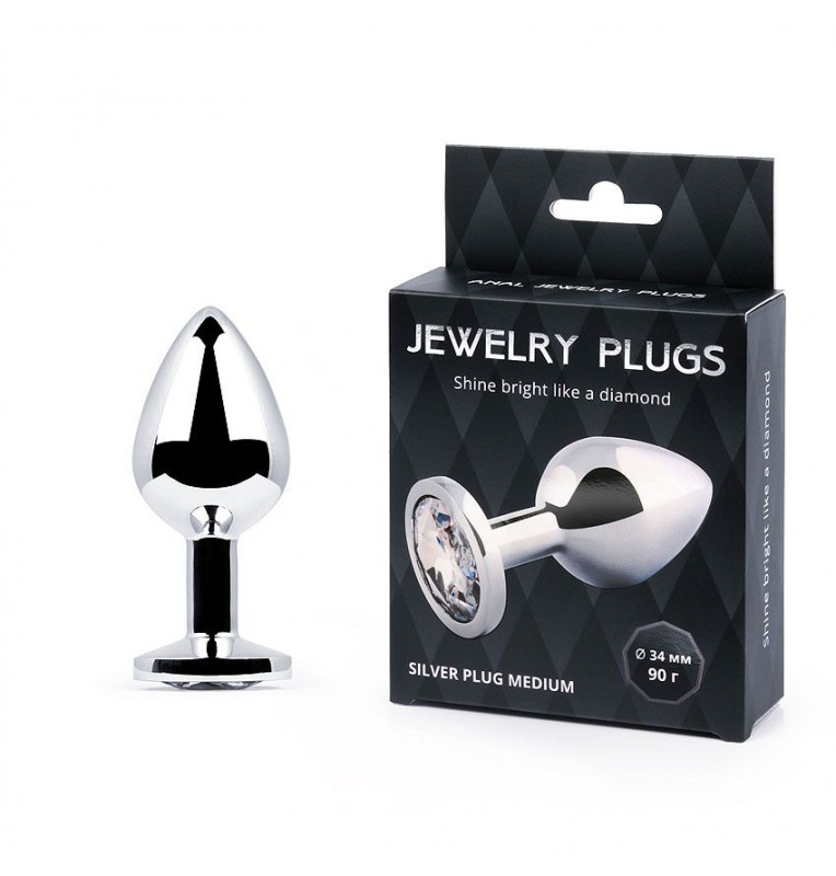Анальная пробка SILVER PLUG MEDIUM с прозрачным кристаллом - 8,2 см.