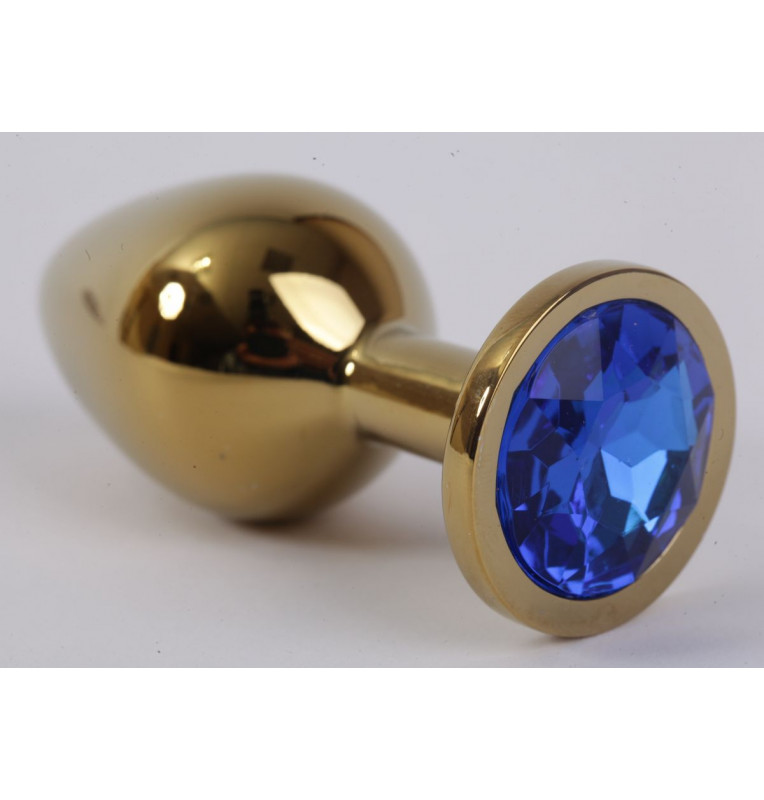 Золотистая анальная пробка с синим кристаллом - 8,2 см.