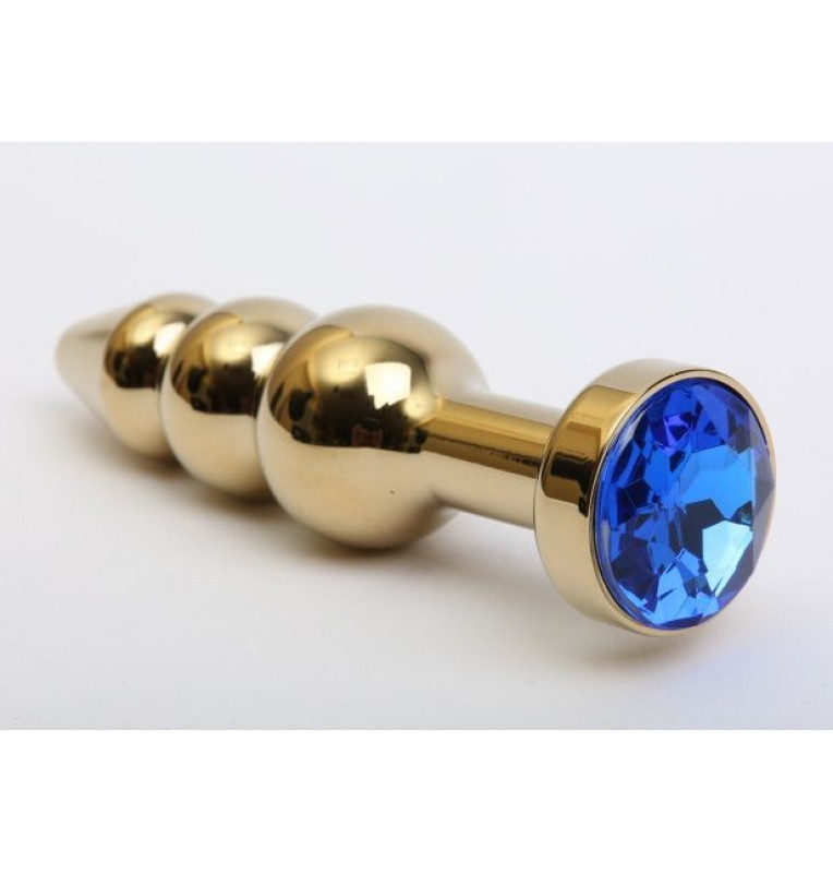 Золотистая анальная ёлочка с синим кристаллом - 11,2 см.