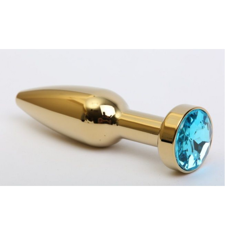 Золотистая анальная пробка с голубым кристаллом - 11,2 см.