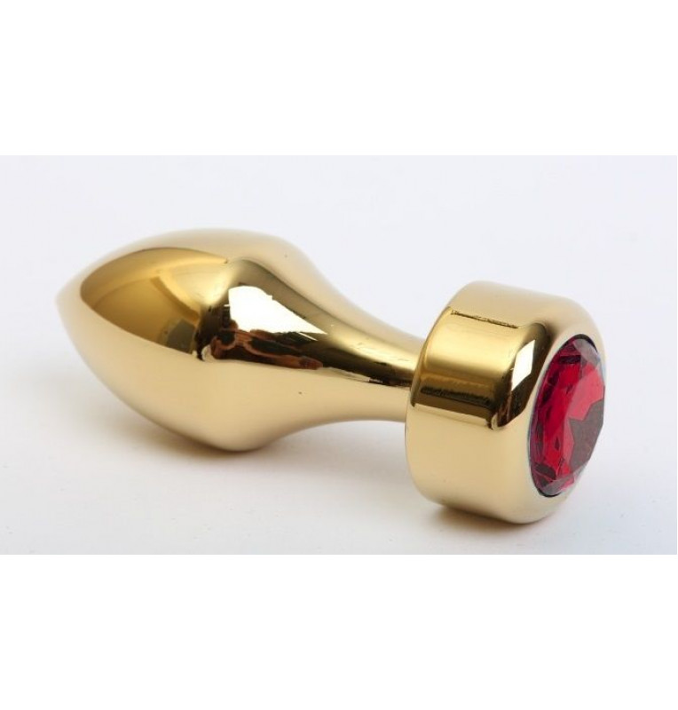 Золотистая анальная пробка с широким основанием и красным кристаллом - 7,8 см.