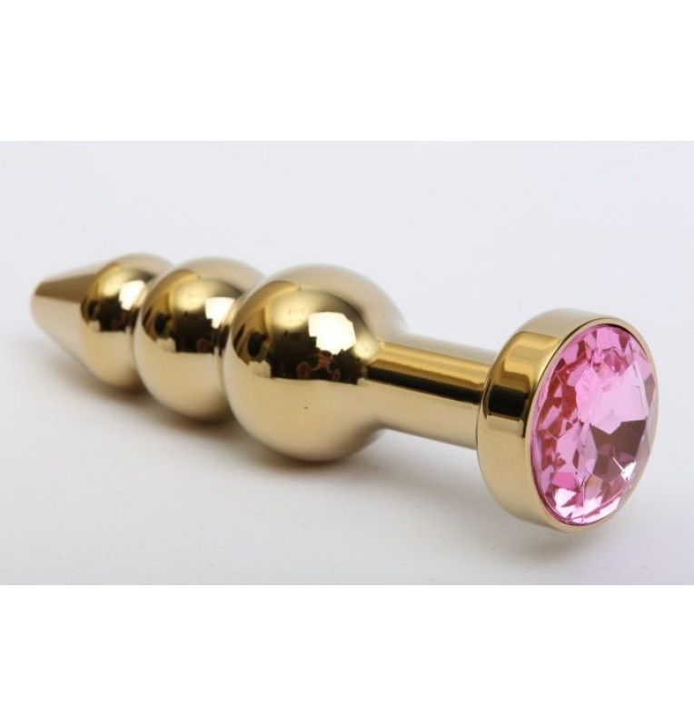 Золотистая анальная ёлочка с розовым кристаллом - 11,2 см.