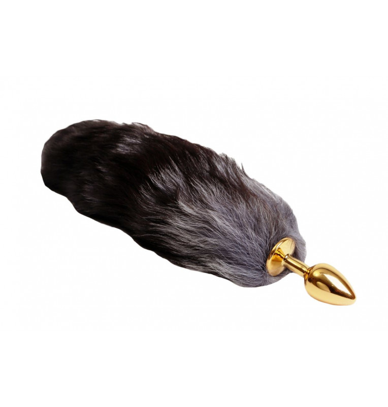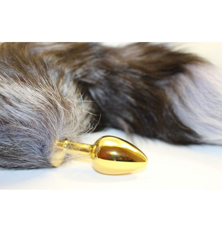Золотистая анальная пробка с хвостиком. Имеет ограничительное основание для безопасного использования. Рабочая длина - 6,5 см. Длина хвоста - 40 см.