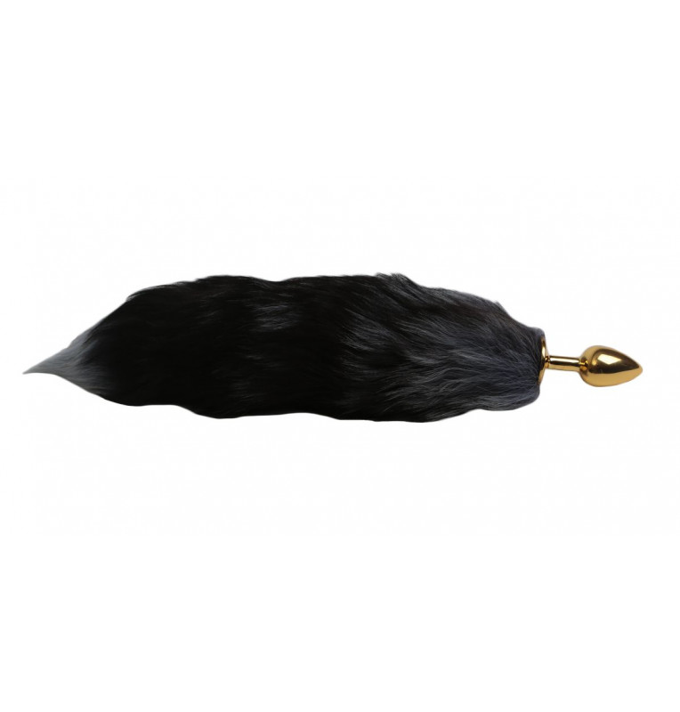 Золотистая анальная пробка с чёрным лисьим хвостом