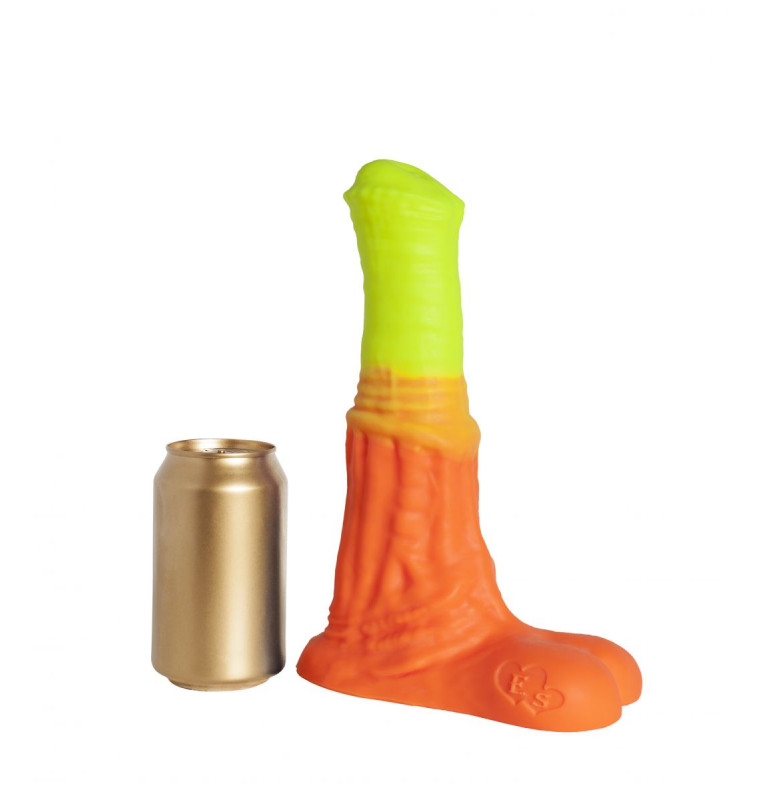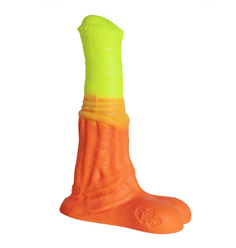 Выполненный вручную «Пегас Large+» от Erasexa – первого и пока единственного российского производителя товаров интимного назначения для поклонников зооэротики – по цвету совсем не похож на фаллос жеребца. А вот во всём остальном – ох! Приплюснутая головка с неровным краем плавно переходит в оранжево-жёлтый крупный ствол с характерным для коней кольцом посередине. Расширяясь книзу, фаллос обещает максимальное приятное растяжение стеночек вагины/ануса при проникновении. Основание с мошонкой не позволит протолкнуть силиконовую и такую приятную на ощупь игрушку слишком глубоко.