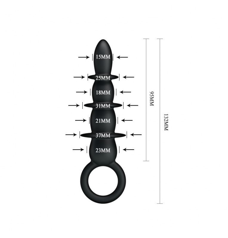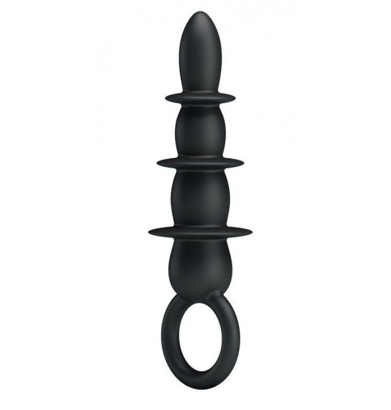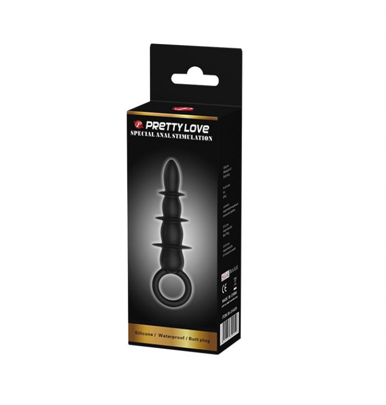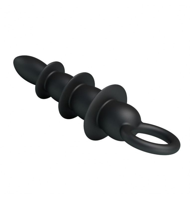 Черная анальная ёлочка с богатым рельефом. Зауженный кончик для легкого введения. Кольцо для удобных манипуляций и управления.