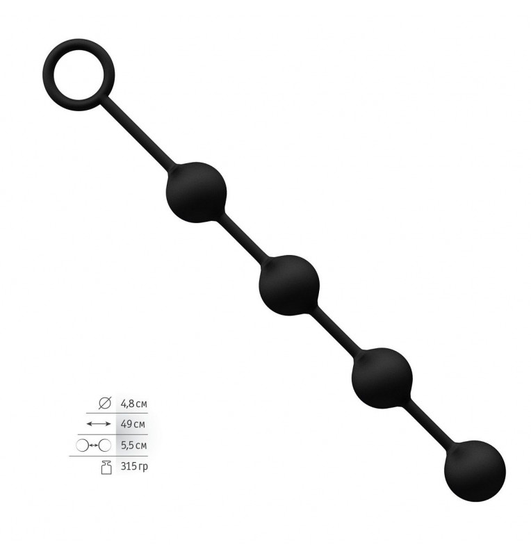 Большая черная анальная цепочка из 4 шариков - 49 см.